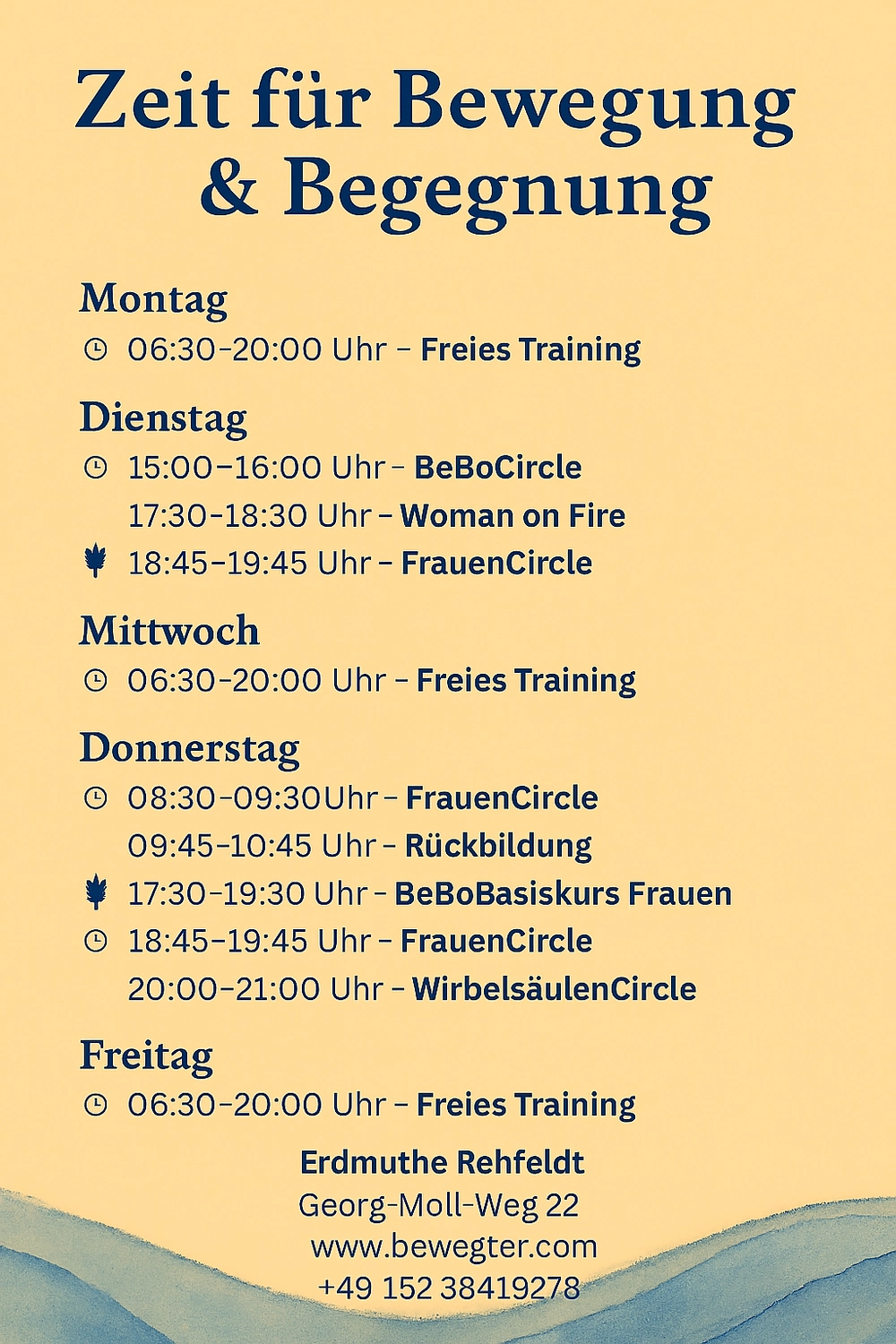 Schwangerschaft und Geburt bringen für eine Gebärende sehr viele Veränderungen mit sich. Wenn die Zeit des frühen Wochenbettes vorbei ist, ist es an der Zeit Körper, Haltung und Alltag mit dem neuen Leben in Einklang zu bringen, um wieder zu einer starken. Mitte zu finden und den Beckenboden zu schützen vor Problemen, die erst viele Jahre später auftreten.